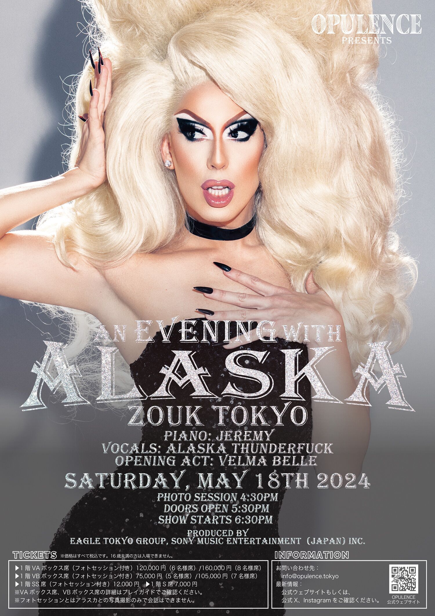 We have invited Alaska and her best friend, pianist Jeremy, to perform a full-length piano and vocal performance at Zouk Tokyo. Alaska will be chatting with the crowd, serving gorgeous looks and performing her own songs as well as some surprise covers in her unique and entertaining style.